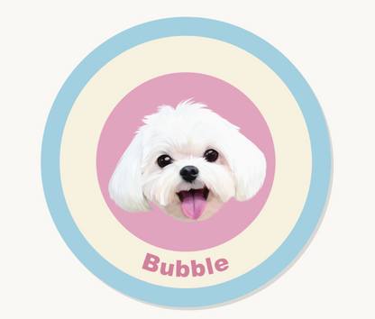 Simply upload your pet’s photo in the image upload box on the product page, and add any text you’d like (such as your pet’s name) in the text field.